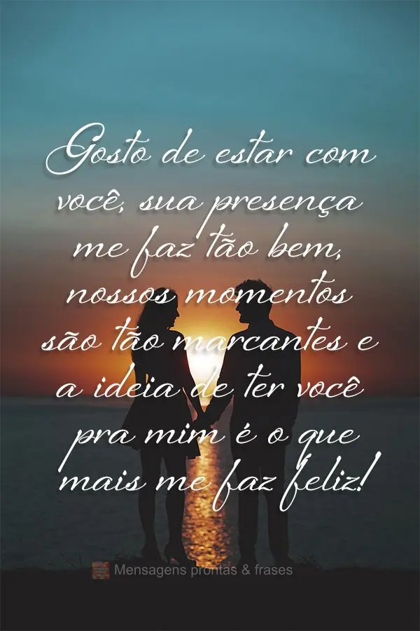 Gosto de estar com você. Sua presença me faz tão bem, nossos momentos são tão marcantes e a ideia de ter você pra mim é o que mais me faz feliz!