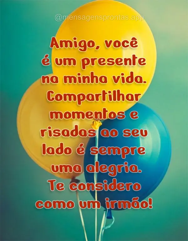 Amigo, só queria que você soubesse o quanto é especial pra mim. Ter alguém como você por perto faz toda a diferença.