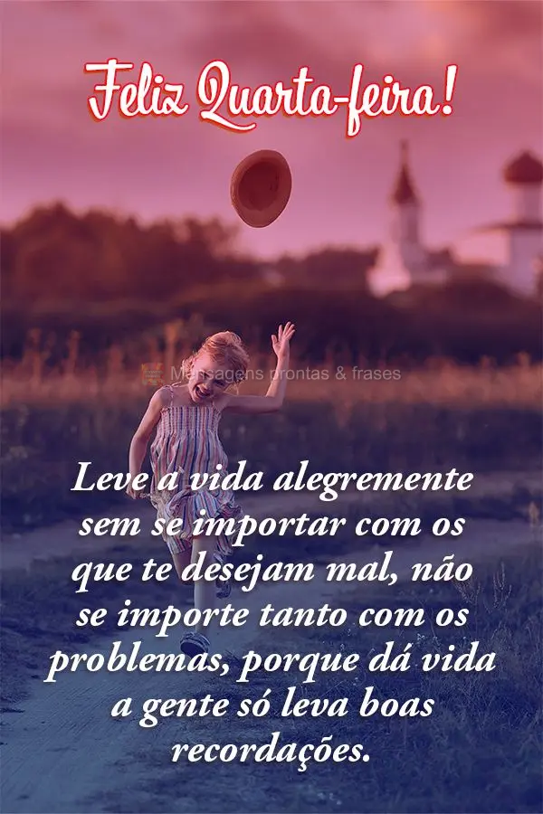 Leve a vida alegremente sem se importar com os que te desejam mal. Não se importe tanto com os problemas, porque dá vida a gente só leva boas recordações. Feliz Quarta-feira!